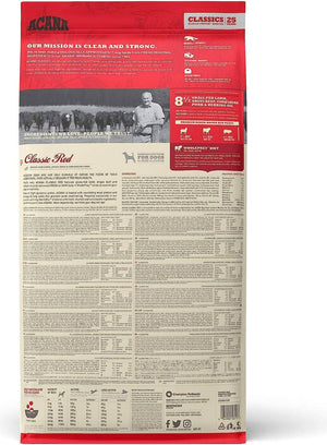De Acana Classics Classic Red 14,5 kg is een volledige hondenvoeding van vers gevogelte met een hogere verteerbaarheid. Deze voeding is bereid van gras-gevoerd lam, angus beef en yorkshire varkensvlees. Dit wordt dagelijks, vers of rauw in Whole Prey verhoudingen, geleverd aan de Acana keuken. Acana Classic Red is rijk aan voedende vlees eiwitten en omega-3-vetzuren om een top conditie te stimuleren. De gezonde granen en parelgerst zorgen voor een hogere verteerbaarheid. Een heerlijke smaaksensatie in de voerbak!