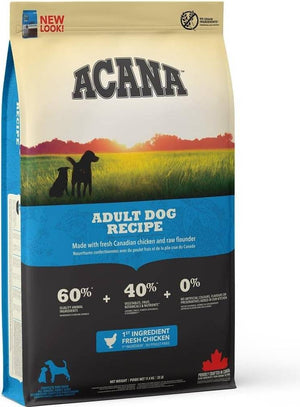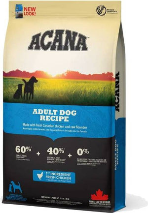 Als het gaat om ACANAR hondenvoer, is elk ingrediënt belangrijk. Daarom is ons recept voor volwassen honden zorgvuldig samengesteld om te voldoen aan de behoeften van volwassen honden van alle verschillende groottes en rassen. Rijk aan 60% hoogwaardige dierlijke ingrediënten zoals verse Canadese kip en rauwe bot, uitgebalanceerd met 40% fruit, groenten en plantaardige ingrediënten, dit recept biedt de voeding en dierlijke eiwitten die uw volwassen hond nodig heeft om zijn beste leven te leiden. Met hoogwaardige dierlijke ingrediënten uitgebalanceerd met fruit, groenten en plantaardige ingrediënten die dagelijks worden geleverd, is elke maaltijd van ACANA Adult Dog Recept alsof deze van de boerenmarkt komt.