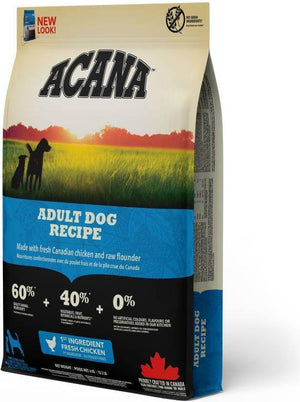 Als het gaat om ACANAR hondenvoer, is elk ingrediënt belangrijk. Daarom is ons recept voor volwassen honden zorgvuldig samengesteld om te voldoen aan de behoeften van volwassen honden van alle verschillende groottes en rassen. Rijk aan 60% hoogwaardige dierlijke ingrediënten zoals verse Canadese kip en rauwe bot, uitgebalanceerd met 40% fruit, groenten en plantaardige ingrediënten, dit recept biedt de voeding en dierlijke eiwitten die uw volwassen hond nodig heeft om zijn beste leven te leiden. Met hoogwaardige dierlijke ingrediënten uitgebalanceerd met fruit, groenten en plantaardige ingrediënten die dagelijks worden geleverd, is elke maaltijd van ACANA Adult Dog Recept alsof deze van de boerenmarkt komt.