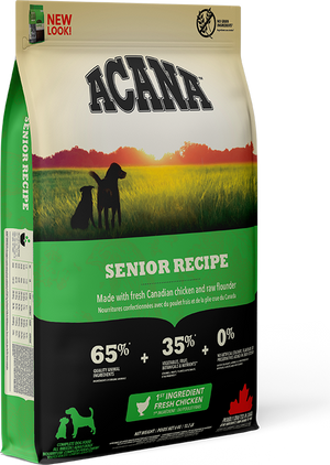 Als het gaat om ACANAR hondenvoer, is elk ingrediënt belangrijk. Daarom is ons Seniorenrecept zorgvuldig samengesteld om je volwassen of oudere hond te helpen voeden. Dit recept, dat rijk is aan 65% hoogwaardige dierlijke ingrediënten zoals verse Canadese kip en rauwe bot, uitgebalanceerd met 35% fruit, groenten en plantaardige ingrediënten, biedt een uitgebalanceerd dieet dat de gezondheid van uw oudere hond zal helpen behouden. Met hoogwaardige dierlijke ingrediënten uitgebalanceerd met fruit, groenten en plantaardige ingrediënten die dagelijks worden geleverd, is elke maaltijd van ACANA Senior Recept alsof hij van de boerenmarkt komt. 1e ingrediënt is verse Canadese kip. Onze verse ingrediënten gebruiken koeling als enige conserveringsmethode en onze rauwe ingrediënten worden ingevroren op hun maximale versheid. Evenwichtige voeding en minder calorieën om een gezond gewicht te ondersteunen en uw oudere hond te verzorgen. Bevat geen graaningrediënten. Met trots vervaardigd in Canada.