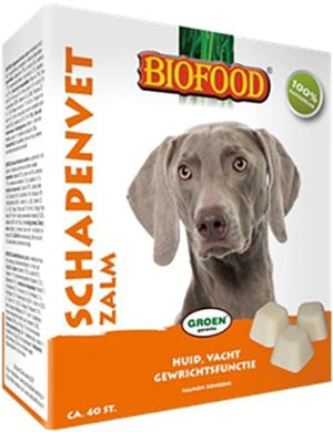 De BF Petfood Schapenvet Maxi Bonbons Zalm 40st is een natuurlijk middel ter ondersteuning van afweer, huid, vacht, (spijs)vertering en weerstand. Het is tevens een uitzonderlijk gezonde en smaakvolle toevoeging op de dagelijkse voeding. De zalmbonbon is rijk aan omega 3 en 6 vetzuren. Ondersteunt huid, vacht, hart en bloedvaten. Schapenvet bevat ongeveer 58% verzadigde vetzuren en ongeveer 32% enkelvoudig onverzadigde vetzuren. Vet is een smaakmaker en belangrijk bij de transport van vitamine A, D, E en K in het lichaam. Daarnaast gaat het vetmetabolisme van de hond zeer efficiënt om met vet en zet vet om in energie. Voor alle hondenrassen en alle leeftijden.