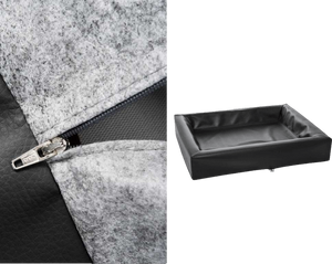 De Bia Bed Kunstleer Hoes Hondenmand Zwart Bia-7 120X100X15 cm is een kunstlederen hoes voor over een Bia Bed 7 in een mooie zwarte kleur met een stoer uiterlijk. Deze hoes past perfect over Bia Bed maat 100. De hoes is van hoogwaardige kwaliteit, zacht, warm en zorgt voor een behaaglijk gevoel voor jouw hond als hij in zijn mand ligt. Droog de hond goed af voor hij in zijn mand gaat liggen, kunstleder neemt namelijk geen water op. Vlooien, mijten en teken kunnen zich niet hechten op de kunstleer hoes. Je hoeft het materiaal dus niet met antivlooienmiddel te behandelen.