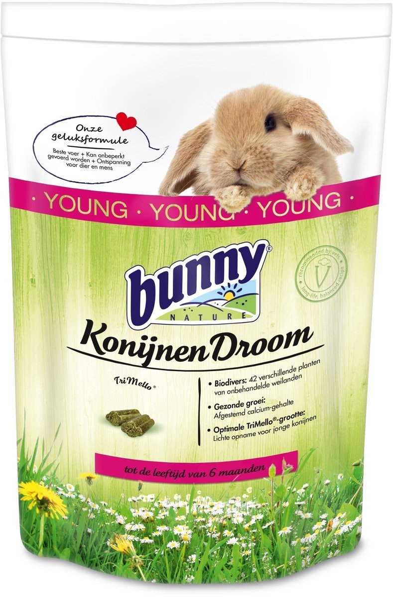 Bunny Nature Konijnendroom Young is een volledig diervoeder voor jonge konijnen. De ingrediënten komen van duurzaam bewerkte bedrijven, die zoals bunny respectvol met het milieu omgaan. Dierenvrienden, vaklui en dierenartsen vinden elkaar bij bunny, om zeer gemotiveerd het beste voor het dier te bereiken.