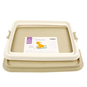 Deze Padhouder is ideaal om samen met puppypads te gebruiken voor huistraining van jouw hond. Deze houder bestaat uit een frame waarvan de bovenkant met klemmen los en vast te maken is, zodat je moeiteloos de pads in de houder kunt klemmen. De pad blijft stevig op zijn plaats in de houder en voorkomt zo dat deze gaat lekken als deze bijvoorbeeld nat is. Aan de onderzijde bevinden zich anti-slip rubbertjes, zodat de padhouder goed blijft liggen op de plaats waar jij wilt.