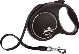 De Flexi Rollijn Black Design Tape Zwart M 5 meter is een handige, stijlvolle looplijn met band op rolmechanisme voor honden tot 25 kg. Deze nieuwe, zwarte uitvoering is stoer met een schattig tintje! De behuizing van de Black Design Flexi is zwart, met een zilver Flexi-logo en de afbeelding van een hond. De lijn bestaat uit een stevige platte band met musketonhaak op rolmechanisme, waardoor de hond meer ruimte heeft om te lopen. Met de knop bovenop kun je de lijn tijdelijk of permanent op een bepaalde lengte blokkeren. Een stijlvolle rollijn van de bekende Flexi-kwaliteit die de hond lekker veel bewegingsruimte biedt!
