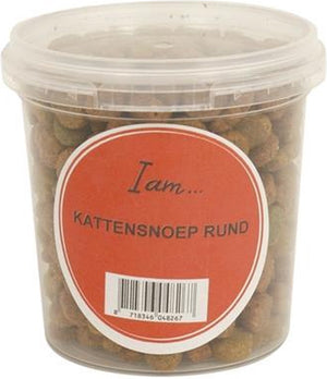 De I Am Kattensnoep Rund 70 gram snoepjes voor de kat zijn heerlijke, compacte tussendoortjes voor de kat met rundsmaak. Door hun kleine formaat en handige vorm ideaal om als beloning of tussendoor te geven! De snoepjes zijn uitgevoerd in diverse kleuren en vormen en hebben een lekkere rundsmaak. Let op: bevat ook kip!