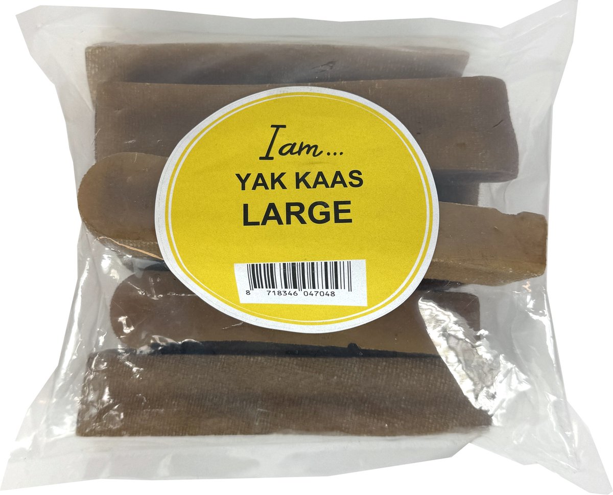 De I Am Yak Kaas Large 1 kg is een gezonde snack is gemaakt van yak-melk en koemelk bereid volgens traditioneel churpi-recept. Er zijn verder geen kunstmatige geur, kleur en smaakstoffen aan de snacks toegevoegd en daardoor zijn ze een heel gezond tussendoortje. Door de harde structuur en het kauwen erop helpen ze ook de tanden en het tandvlees van de hond te verzorgen. Bovendien zijn de repen laag in vet, daar bij het produceren van kaas met yakmelk het meeste vet wordt verwijderd. Het vetgehalte is dus lager en het proteïne-gehalte hoger dan bij koemelk. Daarnaast wordt de lactose geminimaliseerd en is de kans op reactie op lactose veel kleiner dan bij koemelk-producten. Zo kan jouw hond naar hartenlust genieten van deze lekkere I Am Yak Kaas reep!