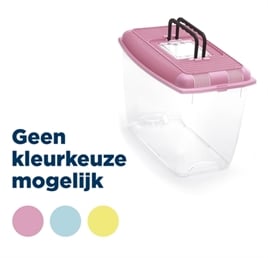 Het Imac Aquarium Ariel Plastic Assorti in 10 liter is een handige plastic aquarium of terrarium voor het vervoeren en houden van huisdieren. Dit aquarium is lichtgewicht en daardoor ideaal voor het vervoeren van kleine huisdieren of reptielen. Ook kun je dit handige bakje door het deksel met extra deurtje zeer goed gebruiken voor bijvoorbeeld het houden van (voeder)insecten. Het bakje is voorzien van een bovenkant met luchtgaten en een handig handvat voor gemakkelijk vervoer. Wordt assorti geleverd met een dekseltje in diverse leuke kleuren.