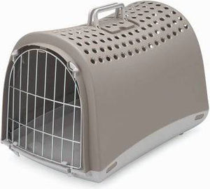 Imac Reismand Linus Taupe 50X32X34,5 cm is een moderne transportbox voor de hond of kat van sterk plastic, met veel ventilatie en ijzeren traliedeur.