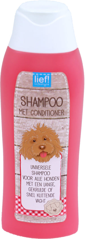 De Lief! Shampoo Universeel Lang Haar in 750 ml is een universele hondenshampoo voor honden met lange, gekrulde of snel klittende vacht. Deze heerlijk geurende shampoo verfrist, voedt en zorgt voor een gehydrateerde, zachte en glanzende vacht. Door de PH-neutrale formule met extra conditioner is de shampoo hydrateert de shampoo de vacht en zorgt daardoor voor een goede doorkambaarheid.