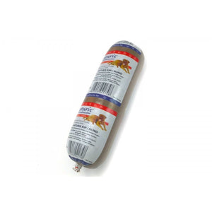 De achterliggende gedachte van ons Versvlees Houdbaar is om een waardige vervanger te hebben voor ons Versvlees Diepgevroren indien u bijvoorbeeld op vakantie gaat, vergeten bent een worst te ontdooien of indien u gewoon een gezond en lekker snoepje wenst te geven aan uw trouwe viervoeter.
