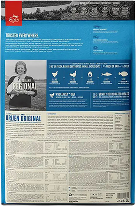 De Orijen Whole Prey Original Dog 11,4 kg complete hondenvoeding is hondenvoer rijk aan scharrelkip en kalkoen, in het wild gevangen vis en scharreleieren in WholePrey verhoudingen. De natuurlijke voeding van Orijen bevat een ongeëvenaarde variatie aan vers vlees en verse vis. Het wordt bereid met 85% dierlijke ingrediënten en is 100% natuurlijk. Deze brokken bevatten hoogwaardige voedingsstoffen in de meest verse, natuurlijke en voedzame vorm. Maar liefst twee derde van het vlees, vis, gevogelte en eieren is vers of rauw.