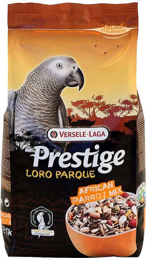 Prestige Premium Afrikaanse Papegaai 1kg is een volledig papegaaienvoer voor kleinere papegaaien uit Afrika zoals grijze roodstaarten, jardines en bonte boeren.