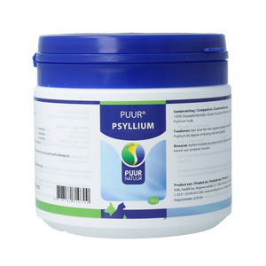 Eigenschappen per ingrediënt: PUUR Psyllium bevat alleen het werkzame bestanddeel, namelijk het vliesje van het vlozaad en niet het hele zaad. Dit heeft de eigenschap dat het zeer veel vocht op kan nemen. Hierdoor wordt de darminhoud zachter en volumineuzer waardoor de darmpassage verbeterd wordt. Dit heeft als gevolg dat verstopping wordt tegen gegaan en de darmperistaltiek wordt verbeterd. Psyllium Husk kan toxines en zware metalen aan zich binden en zo het ontgiftingsmechanisme van het lichaam ondersteunen. PUUR Psyllium wordt bij dunne ontlasting gegeven met weinig water en bij verstopping met veel water.