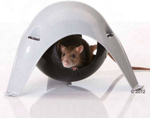 Hamsterhuisje in 'sputnik'vorm. Het huisje kan zowel op de bodem van de kooi staan als bovenin aan de tralies worden opgehangen.