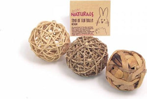 Jouw knager kan zijn lol op met deze set van drie speelballen. De speelballen van natuurlijke materialen voorkomen verveling en zijn ook nog eens heel fijn om lekker op te knagen.