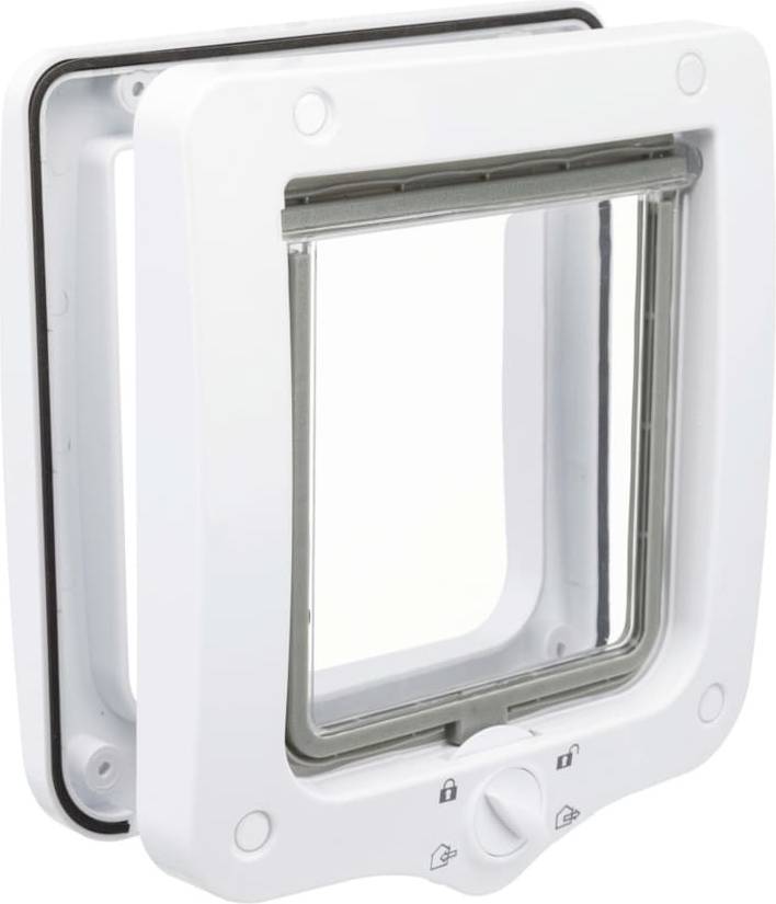 Het Trixie 4-Weg Kattenluik Grijs van 22X10 cm is een huisdierluik met vier afsluitmogelijkheden (dicht, open, alleen in, alleen uit) met transparante klep. De perfecte oplossing voor iedereen die zijn kat meer vrijheid wil geven, zonder telkens aanwezig te moeten zijn om het dier naar binnen en naar buiten te laten. Dit kattenluik monteer je eenvoudig in de deur van jouw keuze. Het kunststof luik is rondom afgedicht met TPR- en heeft een geluidsarme klep voor zo min mogelijk tocht en overlast. Met de draaisluiting kun je het luik op vier standen zetten, namelijk: geheel gesloten, in en uit, alleen in of alleen uit. Zo zorg je bijvoorbeeld ook dat jouw kat terug naar binnen kan en vervolgens niet meer terug naar buiten. Waterproof en met drie jaar garantie!