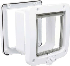 Het Trixie 4-weg Kattenluik Inclusief Tunnelstuk Grijs 20X20 cm is een kunststof huisdierluik voor honden en katten speciaal voor dikke muren en deuren. Ideaal voor mensen die een dikke muur of deur hebben, maar toch willen dat hun dier naar buiten en naar binnen kan. Het luik kan ingesteld worden op alleen naar binnen, alleen naar buiten, allebei en geen van beiden en heeft een makkelijke draaisluiting om te bepalen in welke richting het luik open kan. Het luik is uitgerust met een transparante klep die geluidsarm is en twee tunnelelementen vooral voor de dikkere muren en deuren. Je kunt het luik desgewenst met verdere tunnelelementen uitbreiden. Met drie jaar garantie!