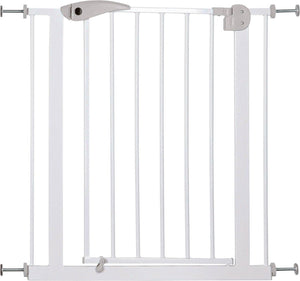 Ook is dit hek makkelijk in gebruikt. Er is naar twee kanten en zwenkbare metalen deur en het hek is voorzien van een veiligheidssluiting. Deze is gemakkelijk met één hand te openen, zodat je ook met de voerbak, was of kinderen in één hand nog makkelijk kunt passeren. Makkelijk en veilig voor iedere gewenste plek in huis dus!