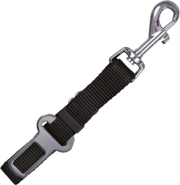 Jouw hond zit veilig vast in de auto met deze autogordel van Trixie. Deze korthouder heeft aan één kant een normale musketonhaak, en kan aan de andere kant in de gordel van de auto geklikt worden. Zo blijft jouw hond op zijn plek en komt dat jullie veiligheid en die van het overige verkeer zeer ten goede. De gordel is traploos verstelbaar en door de metalen schuifgesp zeer belastbaar.