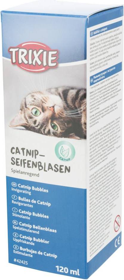 De Trixie Bellenblaas Catnip 120 ml is een bellenblaas met bellen speciaal voor de kat, met heerlijk kattenmunt extract. Dit stimuleert het spelen omdat muntextract de speeldrift stimuleert. De belletjes bestaat uit een flesje met vloeistof en bellenblaas en is dus door iedereen te gebruiken!