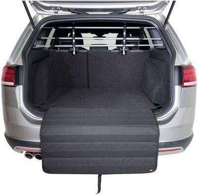 De Trixie Bumperbescherming Opvouwbaar Zwart 80X63 cm is een rubberen beschermingsmat met versterkingsinzetstukken ter bescherming van de autobumper. Het ideale middel om de hond in en uit de kofferbak te laten springen zonder dat de nagels schade aan de lak van de auto of de kunststof delen veroorzaken. Tevens zorgt deze bescherming voor meer grip, zodat de hond gemakkelijker in en uit de auto kan springen. De bescherming is gemaakt van rubber en voorzien van versterkte inzetstukken. Met elastieken banden en karabijnhaken kan de bumperbescherming eenvoudig aan de laadhaken in de kofferbak worden bevestigd. Wanneer deze niet gebruikt wordt, kan deze mat eenvoudig ruimtebesparend op te bergen en met klittenband vastgemaakt worden.