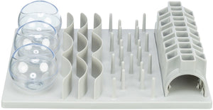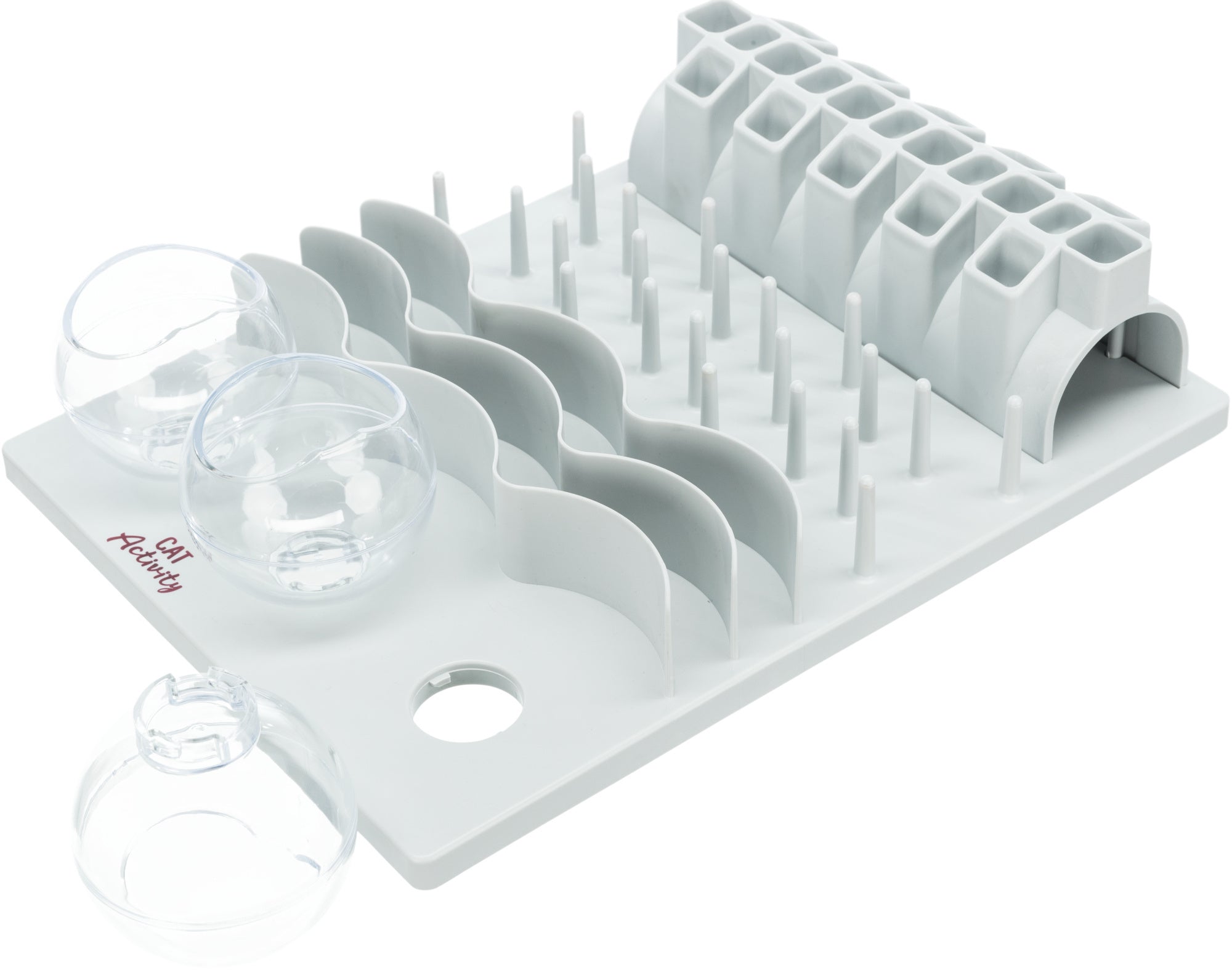 Het Trixie Cat Activity Fun Board XXL van 40 x 30 cm is een intelligentiespel voor de kat, met verschillende spelmodules waar de kat zijn beloning uit te pakken moet krijgen. Bijzonder geschikt voor katten van grotere rassen! Dit grote bordspel is zeer veelzijdig, want het bevat vijf verschillende spelmodules. Dit houdt in dat er vijf verschillende speeltjes op het bord zijn bevestigd waar de kat zijn beloning uit moet zien te krijgen. Het bord bevat bijvoorbeeld een tunnel waar de traktatie in verstopt wordt, kommetjes en een doolhof van pinnen waartussen de kat naar zijn snack moet hengelen. Door de grotere speeltjes kun je dit bord her en der ook met grotere lekkernijen vullen én is het bijzonder geschikt voor grotere katten, zoals Maine Coons en Noorse Boskatten. Het spel is bovendien voorzien van rubberen voetjes om schuiven te voorkomen en komt met een handleiding met leuke tips voor het gebruiken van het Fun Board. Het spel is ook te gebruiken in plaats van een voerbak: zo actief het dagelijkse voer aanbieden voorkomt schrokken, gaat verveling tegen en kan helpen tegen schrokken.