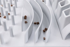 - Voorkomt schrokken doordat je kat langer bezig is met zijn eten te pakken krijgen