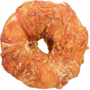 De Trixie Denta Fun Kauwring Kip 10 cm is aanvullend diervoer voor de hond. Het is een lekkere kauwsnack bestaande uit runderhuid, gewikkeld in gedroogde kip, die geen suiker bevat en glutenvrij is. Deze smakelijke snack is goed voor langdurig kauwplezier! De ring is gemaakt van extra dikke runderhuid om op te kauwen. Kauwen op runderhuid gaat verveling tegen en helpt bij het verzorgen van het gebit, omdat de huid langs de tanden wrijft en zo tandplak en tandsteen helpt te verminderen. De ring is omwikkeld met een jasje van gedroogde kip voor extra smaak en stimulans. Het product is natuurlijk en bevat geen toegevoegde suiker. Tevens is de Denta Fun Kauwring glutenvrij!
