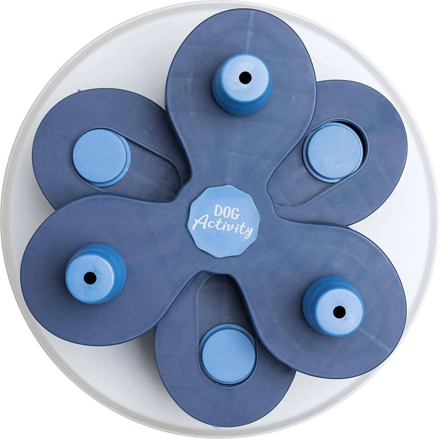Het Trixie Dog Activity Intelligentiespel Flower Tower van 30 x 30 x 13 cm is een uitdagend intelligentiespel voor de gevorderde hond. Het spel is voorzien van kommetjes en schuifdeksels op verschillende niveaus, alsook zes kegels die omgeduwd kunnen worden om er eten onder te vinden. Door verschillende openingstechnieken komt de hond bij zijn beloning. Dit biedt mentale uitdaging en gaat verveling tegen. Door de rubberen ring is het speelgoed slipvast en kan jouw hond ongestoord op zoek naar zijn beloning! Het spel komt bovendien met een handleiding met tips en handigheidjes voor een optimale training.