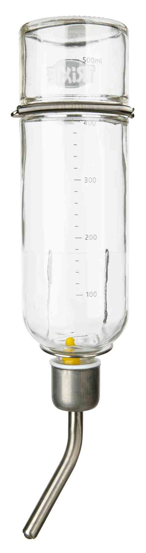 Deze luxe, glazen drinkfles is speciaal bedoeld voor grotere knaagdieren zoals konijnen en chinchillas. Doordat het drinktuitje gemaakt is van metaal kan deze niet kapot worden gebeten. In de fles zit een Ofloater zodat je altijd kan zien hoeveel water er nog in de fles zit. Tevens is deze fles voorzien van kogel tegen het lekken.