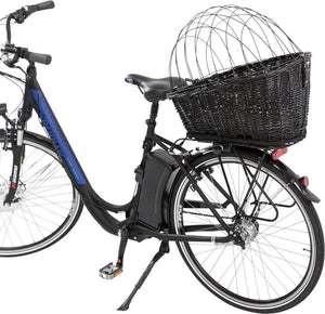 Met de Trixie Fietsmand Met Draadkoepel Achterop Zwart 35X49X55 cm gaat jouw hond comfortabel en veilig met jou mee op al jouw fietstochten. Deze leuke mand is gemaakt van gevlochten wilgentakken in een frisse, lichtgrijze kleur. De mand is voorzien van een rooster om te voorkomen dat de hond onderweg uit de mand kan springen. De mand is te bevestigen op de bagagedrager en bevat een kussen met grijs velours overtrek.