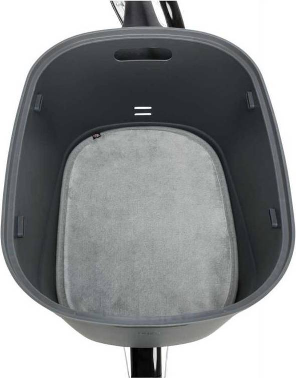 De Trixie Fietsmand voor Bagagedrager met Draadkoepel Kunststof Grijs 46X36X47 cm is een kunststof fietsmand voor de hond, met snelbevestiging en ligmat.