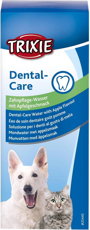 De Trixie Gebitsverzorgend Mondwater Hond / Kat 300 ml met appelaroma verzorgt het gebit van hond of kat via het drinkwater, voor een betere hygiëne in de bek. De gemakkelijkste gebitsverzorging voor jouw hond of kat: simpelweg schudden en het mondwater in een verhouding van 1:50 aan het drinkwater toevoegen. Het mondwater lost op in het water en helpt om schadelijke bacteriën in de mond te voorkomen. Zo zorg je voor een betere hygiëne in de bek van het dier een daardoor een frisse adem en gezonder gebit.