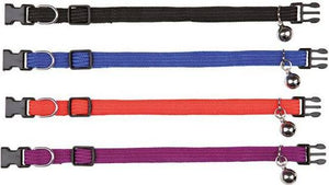 De Trixie Halsband Kat Nylon Assorti is een kattenhalsband voorzien van een ring en belletje en clicksluiting. Zo kun je jouw kat een adreskoker of penning meegeven en kan je viervoeter zorgeloos op pad! De halsband is traploos verstelbaar voor een goede pasvorm en sluit eenvoudig met de clicksluiting. Aan de ene ring hangt een belletje om ongeoorloofd jagen te voorkomen, de andere kun je ook gebruiken om een penning of adreskoker aan te hangen.