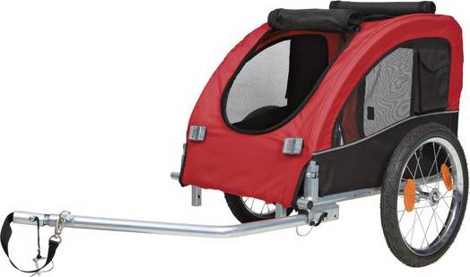 Met deze hondenfietskar van Trixie van 75X63X68 cm in zwart en rood neem je jouw hond mee op elke reis met de fiets!