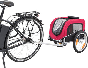Met deze hondenfietskar van Trixie van 80X75X86 cm in zwart en rood neemt je je hond overal mee naartoe op reis met de fiets.