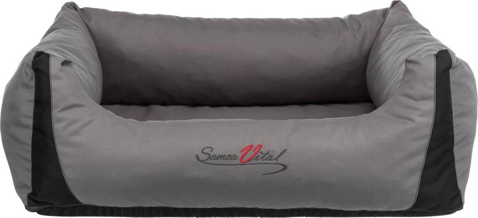 De Trixie Hondenmand Samoa Vital Orthopedisch Zwart van 100 x 80 cm is een orthopedisch bed voor de hond met stevige rand. Het comfortabele bed is zeer geschikt voor oudere dieren of honden met lichamelijke klachten. Het bed is gemaakt van een ligoppervlak van visco-elastisch schuim/schuimrubber van 5,5 cm en een rand van schuimrubber vlokken en een polyester vulling . Dit maakt het bed zeer robuust en hoogwaardig maar toch ook comfortabel. De slipvaste onderkant zorgt ervoor dat het dier gemakkelijk op en van het bed kan stappen zonder dat het verschuift en de nylonlook maakt het helemaal af. Het bed is ook geschikt voor dieren met allergie, daar wassen op 60 graden huisstofmijten doodt en huidschilfers en pollen verwijdert. Gefabriceerd in de EU!