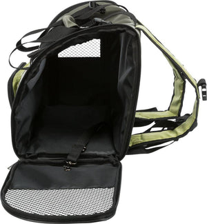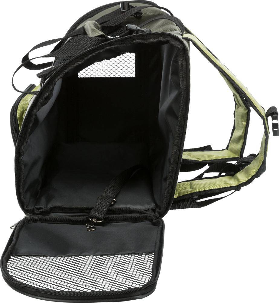 De Trixie Hondentas Shiva Bruin / Beige 41X21X30 cm is een draagtas voor de hond, ook te bevestigen aan trolleys, met gevoerde bodemplaat en korthouder. Jouw hond gaat overal mee naartoe met deze handige hondentas Shiva van Trixie. Deze hondentas is te gebruiken als rugtas, draagtas en ook te bevestigen aan een trolley. Ideaal om mee te nemen op reis! Deze tas is aan de voorkant en zijkant te openen zodat jij altijd voldoende toegang hebt tot jouw dier, en voorzien van buitenvakken om spullen in mee te nemen. De geïntegreerde korthouder voorkomt dat jouw dier uit de tas kan springen en de uitneembare, gevoerde bodemplaat zorgt voor meer comfort. Met reflecterende elementen voor meer veiligheid!