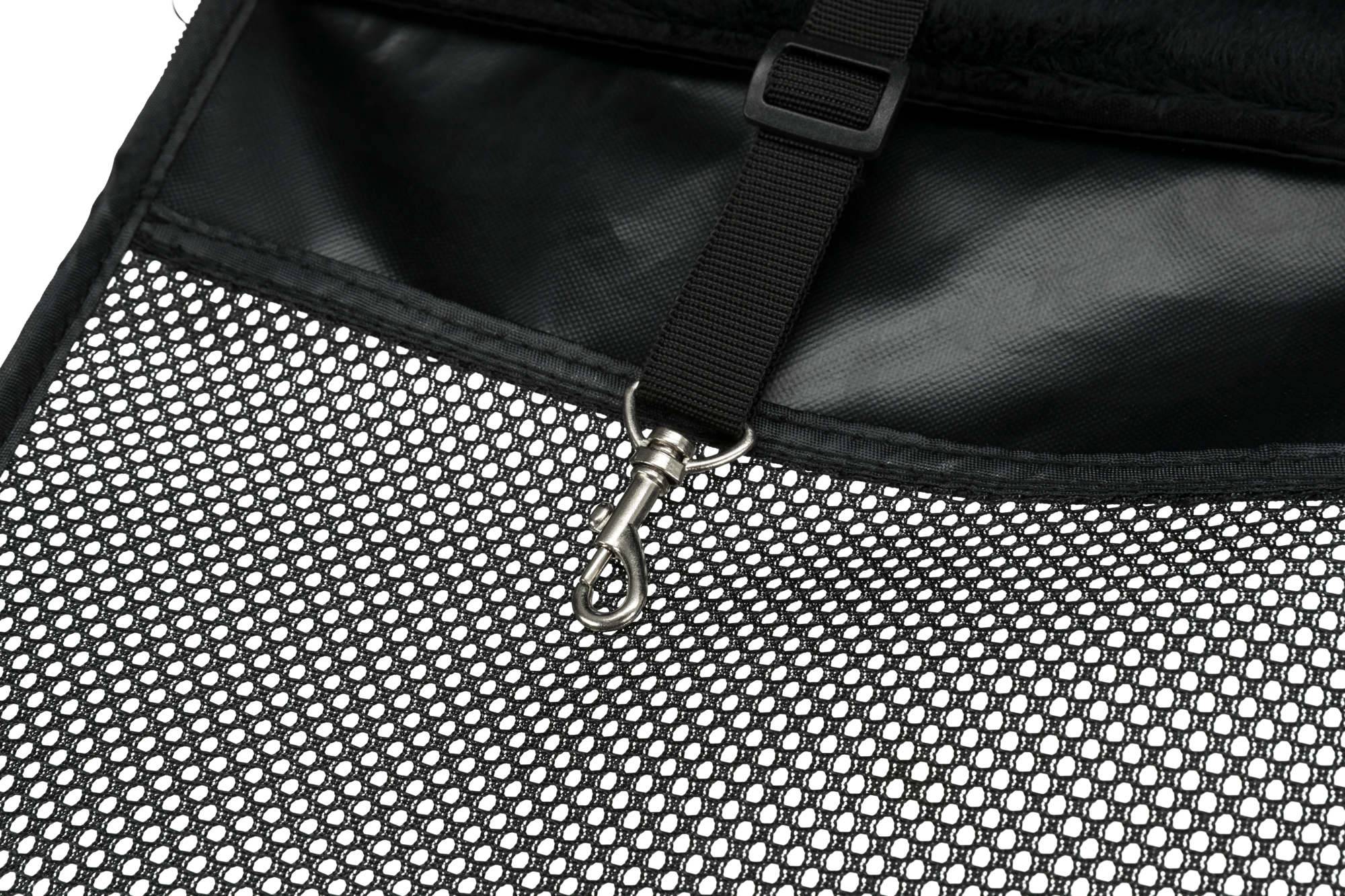 Heb jij een hond die graag met je mee op pad gaat? Dan is deze handige hondendraagtas van Trixie iets voor jullie! De Trixie William tas is uitgevoerd als rugtas die gemaakt van degelijk polyester en extra zacht gevoerd is met schapenvacht look. De taille- en borstriem maken dat het draagcomfort hoog is, net als de anatomische gevormde schouderriemen. De tas is niet belastend voor de rug. De tas is aan de voorkant en bovenkant te openen en heeft gaas inzetstukjes, zodat jouw hond voldoende ventilatie heeft en indien gewenst ook lekker met je mee kan kijken. Een geïntegreerde korthouder zorgt ervoor dat de hond niet onverwachts uit de tas kan springen. Verder is de tas voorzien van reflecterende stroken zodat jullie goed opvallen in het donker. Waar je ook naartoe gaat, met de William hondentas van Trixie gaan jouw lieveling en zijn spulletjes dus altijd comfortabel met je mee!