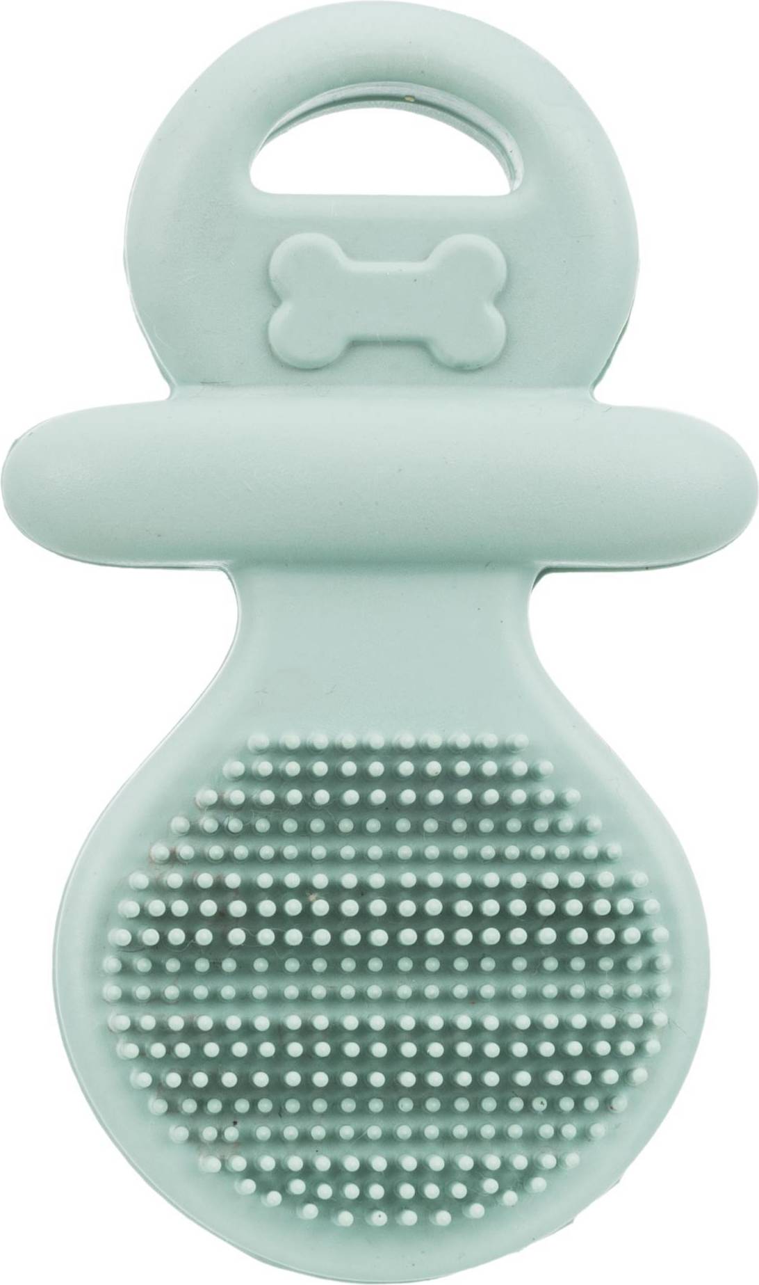 De Trixie Junior Fopspeen Natuurrubber Assorti van 9 cm is leuk hondenspeelgoed voor pups, waar lekker op gekauwd kan worden zodat tegelijkertijd het tandvlees gemasseerd wordt. Jonge honden kauwen graag op rubber, vooral bij het wisselen van de tanden. Deze leuke speen is gemaakt van natuurrubber en dus helemaal veilig voor jouw kleine viervoeter! De uitsteekseltjes fungeren als een soort rubberen borsteltje, dat het tandvlees masseert en helpt de tanden schoon te houden. Leuk, veilig spelen en tandverzorging in één dus!