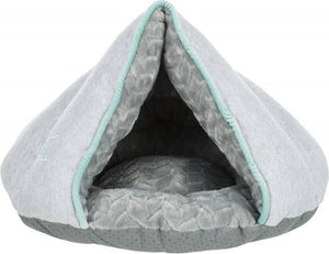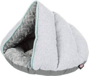 De Trixie Junior Kattenmand Iglo Grijs van 45 x 40 x 30 cm cm is een leuk mandje voor honden of katten in de vorm van een iglo-huisje, van sweatstof/pluche en met slipvaste onderkant. Een knus, geborgen mandje voor jouw hondje of kat! Deze iglo is gesloten van boven en geeft jouw dier zo een veilig gevoel. Door de zachte sweatstof/pluche en polyestervlies vulling is het heerlijk vertoeven in de schuilplaats. De slipvaste onderkant zorgt ervoor dat de iglo niet wegschuift met in- en uitstappen.