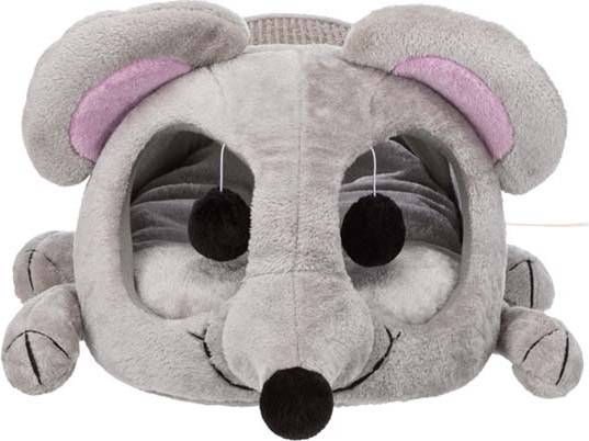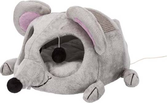 De Trixie Kattenmand Lukas Muis Lichtgrijs/Grijs 35x33x65 cm is een mandje met kraboppervlak in de vorm van een muis met speelelementen. Dit leuke mandje is multifunctioneel! De bovenkant is voorzien van een sisal-krabvlak, ideaal om de nagels scherpen. De mand heeft een schuimrubber vulling en pluche bekleding. Het uitneembare kussen is gevuld met polystervlies voor een hoog ligcomfort. Deze muis heeft een leuk uiterlijk én is voorzien van speelelementen. Zo zijn de oren gevuld met ritselfolie en zijn er speeltjes aan een koord.