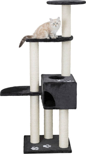 Deze krabpaal is compact, maar biedt jouw dier toch veel ruimte! Krabpaal Alicante is uitgerust met maar liefst vier lig- en zitplaatsen. Eén zitplaats is een knusse schuilplaats, die binnenin bekleed is met pluche voor een heerlijke nachtrust. De stammen zijn met natuursisal bekleed, zodat jouw kat er ook naar hartelust aan kan krabben. Het leuke design met pootafdrukjes maakt het helemaal af!