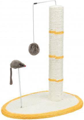 De Trixie Krabpaal Scratch Me Crème Assorti 40X30X50 cm is een krabpaal voor kleinere katten, met sisal, speeltjes en kattenkruid. Krabben is een essentiële behoefte voor katten. Voorkom dat jouw kat aan jouw meubilair begint door voldoende krabmogelijkheden aan te bieden, zoals deze krabpaal van Trixie. Deze krabpaal bestaat uit een stevige bodemplaat met paal omwikkeld met sisal om de nagels aan te slijpen. De paal is uitgerust met kattenkruid en speeltjes om hem nog interessanter te maken voor jouw kat.