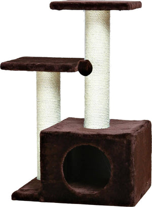 Deze leuke krabpaal is van alle markten thuis. Het krabmeubel beschikt over drie verschillende ligplekken, waaronder één schuilhut die binnen bekleed is met pluche en fleece. Heerlijk knus slapen en verstoppen dus! De stammen zijn omwikkeld met natuursisal. Zo kan jouw kat naar hartelust aan de palen krabben en blijft jouw meubulair heel. Het speeltje aan de krabpaal maakt het helemaal af!