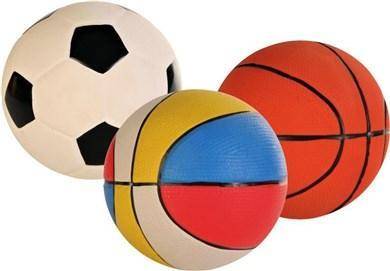 De Trixie Latex Ballen Assorti 13 cm zijn leuke speelballen van latex met polyestervlies vulling en geluid, in de vorm van een voetbal of basketbal. Het ultieme speelgoed voor jouw hond! Deze ballen zijn gemaakt van latex en daardoor vriendelijk voor de tanden en toch goed vast te pakken. Door het lichte gewicht zijn ze ideaal om mee te gooien, te spelen en te apporteren, wat nog leuker is omdat ze voorzien zijn van een pieper. De ballen worden assorti geleverd. Online geen kleurkeuze mogelijk!