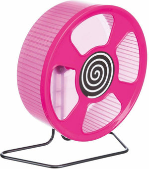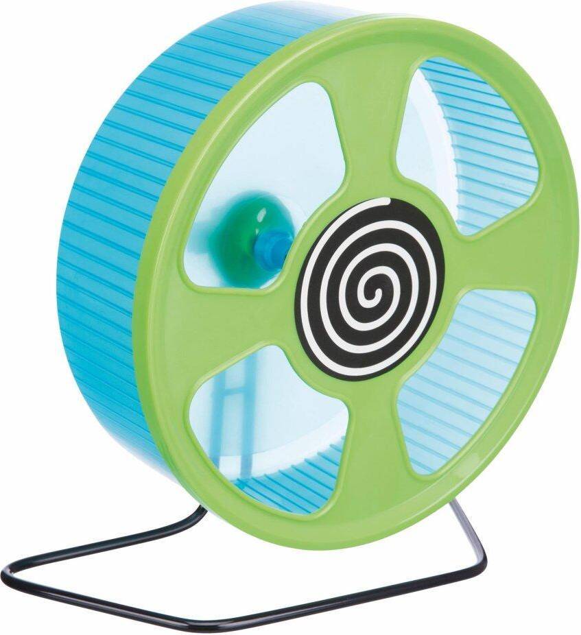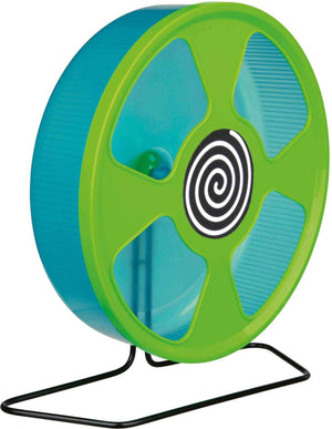 Het Trixie Looprad Kunststof Assorti 28 cm is een loopwiel van groot formaat voor muizen en dwerghamsters, voor minimale belasting van de wervelkolom en bewegen zonder geluidsoverlast. Veel dieren belasten de wervelkolom teveel tijdens het lopen in een loopwiel, omdat zij gebogen moeten lopen in een te klein wiel. Door het royale formaat van dit wiel is dat niet langer aan de order De wervelkolom wordt minimaal belast omdat het dier veel rechter kan lopen en het gesloten loopgedeelte zorgt voor veilig rennen. Het wiel is gemaakt van kunststof voor makkelijk reinigen en loopt soepel en fluisterstil, ideaal omdat muizen en hamsters nachtdieren zijn. Het wiel is met de houder rechtop in de kooi te zetten, maar ook aan de tralies te bevestigen.