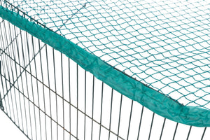 De ren bestaat uit zes panelen en is voorzien van een deur. De maaswijdte is 1X1 cm. Inclusief haringen.