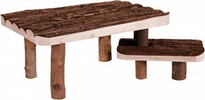 De Trixie Natural Living Afdak / Ligplaats Met Opstapje 37 x 28 x 17 cm is een uitkijkplaats of schuilplek voor jouw dier met een extra trede als opstapje, gemaakt van natuurlijk schorshout. Ideaal voor kleine knagers, omdat dit natuurlijke hout geproduceerd is zonder giftige hars of lijm en dus veilig aangeknaagt kan worden. De ligplaats geeft een veilig gevoel wanneer jouw dier eronder gaat liggen en zorgt eveneens voor een uitkijkplek door de platte bovenkant. De extra trede zorgt ervoor dat jouw dier het plateau makkelijk kan bereiken.